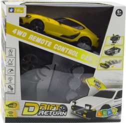 Žuti daljinski upravljani drift auto 4WD nudi stabilnost i pri visokim brzinama zahvaljujući pogonu na sva četiri kotača. S upravljačem od 2.4 GHz možete se veseliti preciznom upravljanju bez smetnji signala. Uz dodatne drift gume postići ćete još glađe manevriranje.