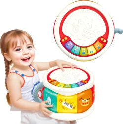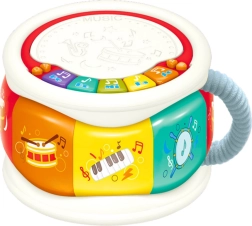 Zabava puna glazbe: Bubanj je opremljen klavijaturom u različitim bojama koje omogućuju sviranje različitih tonova i reproduciranje veselih zvukova. Veliki bubanj djeci također omogućuje učenje ritma i stvaranje vlastitih melodija udaranjem po površini bubnja.