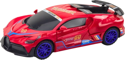 Aerodinamična crvena karoserija, plavi kotači i stražnji spojler daju autu pravi sportski karakter. Dekori “RACING” i “GO SPEED” naglašavaju trkaću narav i potiču kreativnu igru.