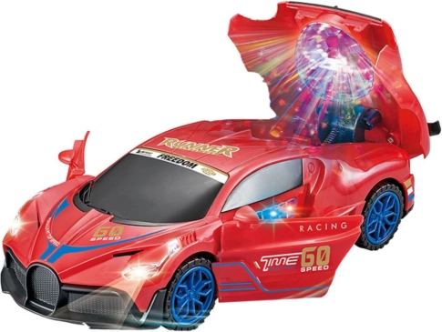 Sportski automobil s LED kuglom, 360° rotacijom i zvukovima – crveni