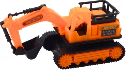 Narančasti bager s gusjenicama ima pokretni krak i žlicu, pa lako zahvaća i presipa materijal.