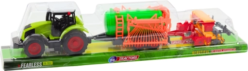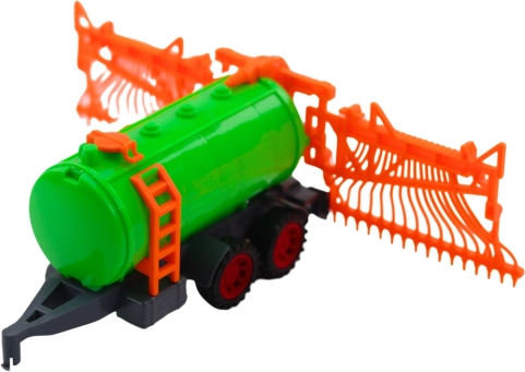 Ovaj detaljno izrađen set donosi djeci svijet moderne poljoprivrede izravno u njihovu sobu. Traktor vjerno oponaša pravi stroj, a priključeni alati – cisterna za tekućine i grabilica sijena – proširuju mogućnosti igre. Pokretni dijelovi poput rotirajućih zubaca grabilice i detaljnih elemenata cisterne podržavaju realistične scenarije.