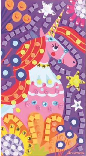 Kreativni set Stick & Fun mozaik jednorog: 3 slike, 500 kamenčića i šljokica, vješalice za izlaganje. Razvija finu motoriku i kreativnost djece od 5 godina.