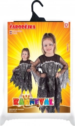 Ovaj kostim vještice idealan je izbor za djevojčice u dobi od 4–6 godina (visina 105–116 cm). Kostim se sastoji od crne haljine sa srebrnim uzorkom paukove mreže koji daje tajanstven i čaroban izgled. Dizajniran je tako da bude udoban za nošenje i omogućuje slobodno kretanje.
