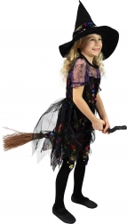 Ovaj dječji vještičji kostim idealan je za male djevojčice koje žude za čarobnim Halloweenom ili karnevalom. Kostim je izrađen od kvalitetnog tekstilnog materijala i nudi ne samo sjajan izgled, već i udobnost pri nošenju. Dimenzijama je prikladan za djecu u dobi od 4 do 6 godina, visine 105–116 cm.