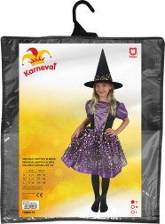 Priuštite maloj čarobnici outfit u kojem će zablistati na svakoj zabavi. Ljubičasto‑crna haljina sa zlatnim točkicama, nabrani rukavi i izražajna suknja stvaraju očaravajući izgled koji privlači pažnju. U kompletu je i usklađeni šešir, zahvaljujući kojem je kostim potpun i spreman za trenutno nošenje.