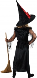 Priuštite svojoj djevojčici magičan izgled koji će privući pažnju na svakoj zabavi. Crno‑crvenu haljinu s nježnom paučinastom čipkom na rukavima upotpunjuje šiljati šešir s mašnom – zajedno stvaraju autentičan vještičji kostim za djecu u kojem će se osjećati odlično.