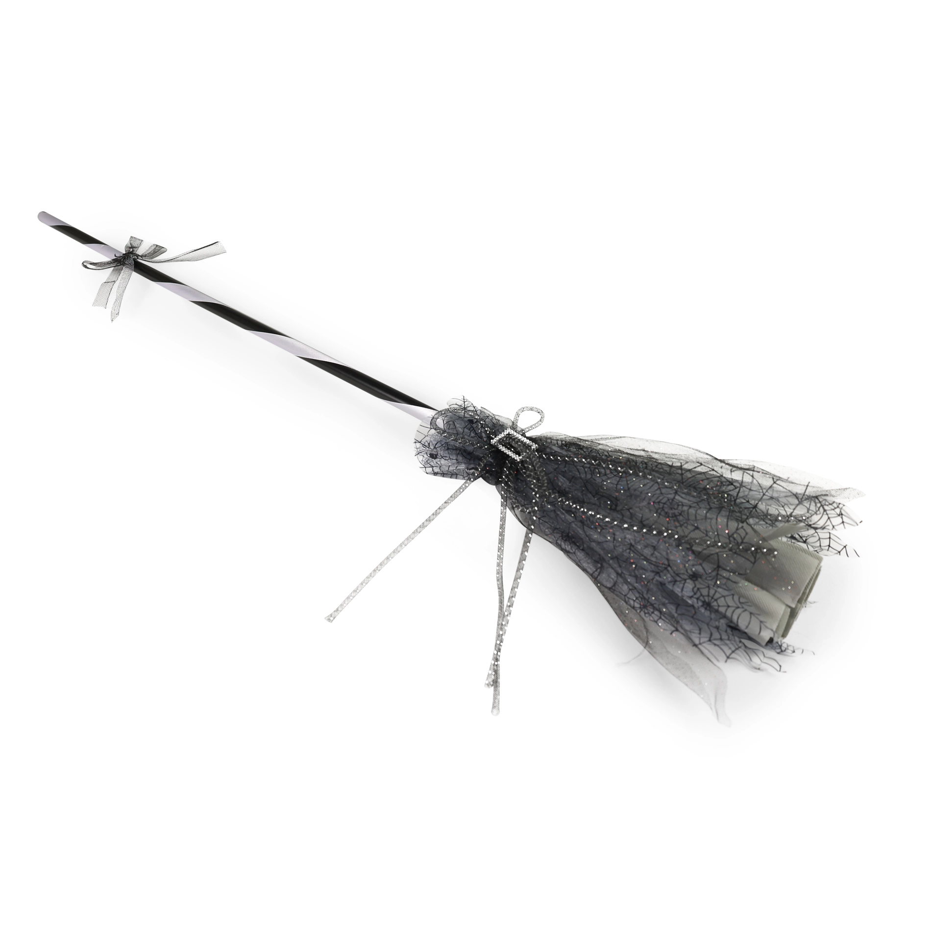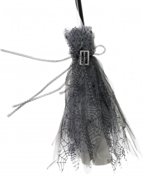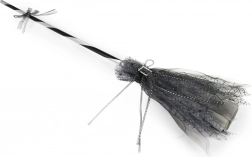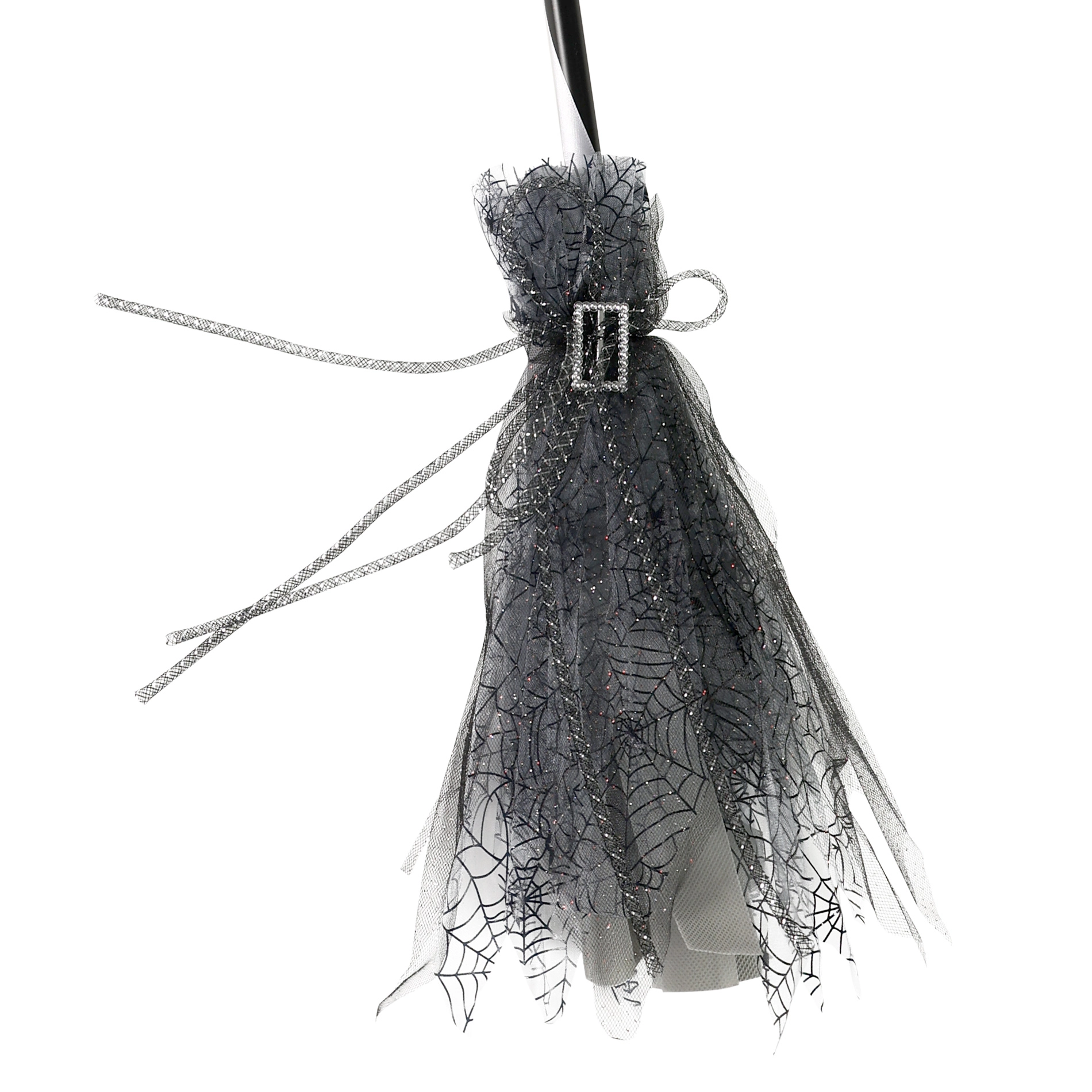 Dodajte savršenu završnicu svom kostimu vještice. Ova vještičja metla u elegantnoj crno‑sivoj izvedbi, ukrašena srebrnom kopčom i nježnom til “suknjicom”, izgleda efektno pri svakom koraku. Laka je u ruci, pa je s njom lako pozirati i plesati na podiju.