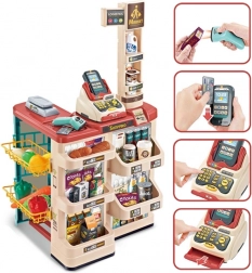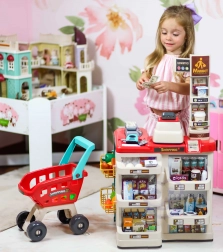 Dječja trgovina WOOPIE pretvara sobu u mali supermarket. Djeca isprobavaju ulogu prodavača i kupca, skeniraju proizvode svjetlećim skenerom sa zvukom, važu voće na imitaciji prave vage i na blagajni plaćaju gotovinom ili karticom. U kompletu su i stabilna kolica za kupnju za još autentičniji doživljaj.