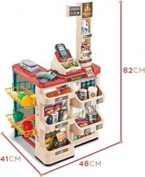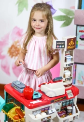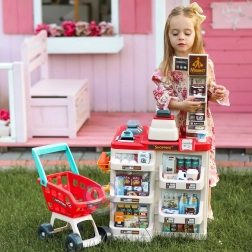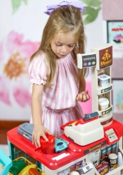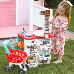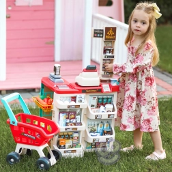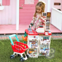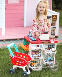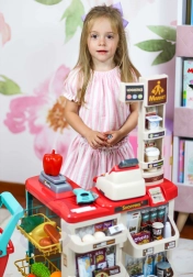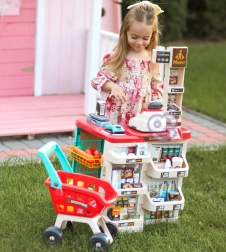Promišljen raspored s policama i cjenovkama potiče učenje o vrijednosti novca, računanju i osnovnoj financijskoj pismenosti. Realistične namirnice (voće, povrće, pića, mliječni proizvodi i dr.) potiču maštu i razgovor, dok se izdržljiva plastična izrada uklapa u svaku dječju sobu.