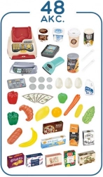 U kompletu su stabilna kolica i 48 dodataka: voće, povrće, pića, mliječni proizvodi, papirnati novac i kartica za plaćanje – sve za potpunu kupnju.