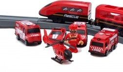 Četiri različita vatrogasna vozila, helikopter i figurica vatrogasca omogućuju djeci stvaranje uzbudljivih spasilačkih misija i razvijanje mašte.