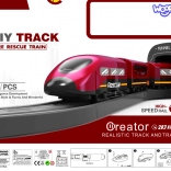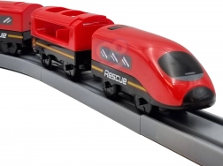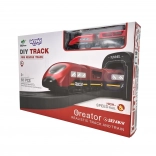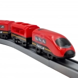 Moderna lokomotiva na baterije (2× AAA, nisu uključene) vozi po bogato opremljenoj pruzi s mostom i tunelom za još realističniji doživljaj.