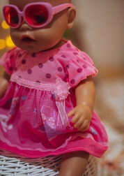 Osim haljine, u pakiranju se nalaze i usklađene cipelice te ružičaste naočale – sve spremno za trenutačnu igru i presvlačenje.