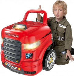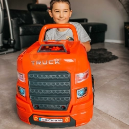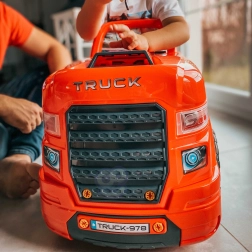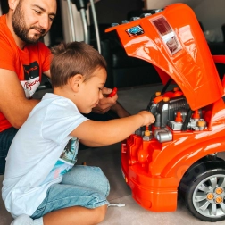 Djeca uživaju u vožnji na robusnom kamionu i istovremeno se igraju mehaničara u kućnoj radionici – dvije igre u jednom setu.