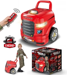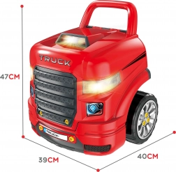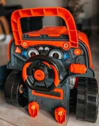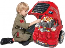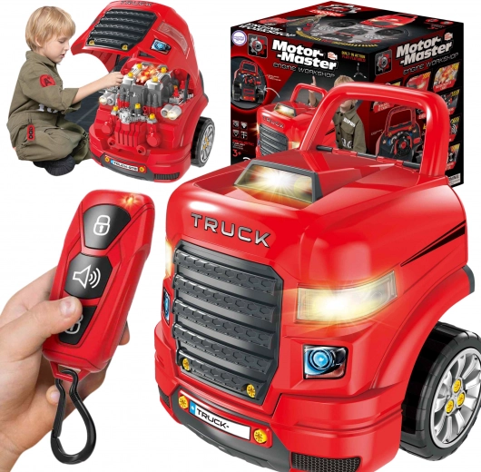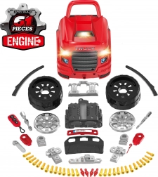 Montažna radionica u obliku prednjeg dijela teretnog vozila donosi djeci realistične doživljaje iz servisa. Ispod haube čeka bogato opremljen “motorski prostor” s elementima za montažu i demontažu, a na instrumentnoj ploči nalaze se volan i upravljači. Svjetla i zvukovi motora te sirene daju igri autentičnost – svime se upravlja priloženim daljinskim upravljačem.