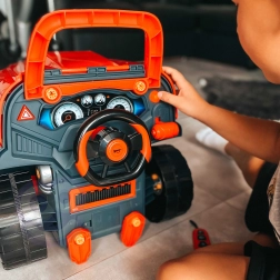 Otkrijte interaktivni prednji dio kamiona brenda WOOPIE s otvorivom haubom, volanom i instrumentnom pločom, koji djeci nudi desetke mehaničkih aktivnosti. U spremniku se nalaze alat, vijci i dijelovi za montažu i demontažu. Za zabavu se brine svjetlosni i zvučni modul (motor, sirena) s daljinskim upravljanjem i praktični dizalica za kotače. Sjajna igračka za male mehaničare koja razvija finu motoriku, maštu i tehničke vještine.