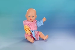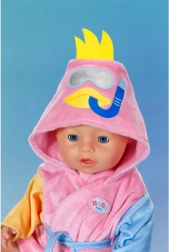 Preslatki ogrtač za lutke BABY born veličine 43 cm pruža maksimalnu udobnost nakon kupanja i tijekom igre. Ružičasto izdanje sa šarenim rukavima i kapuljačom s pačićem privlači pažnju na prvi pogled i potiče dječju maštu u scenarijima njege.
