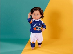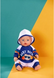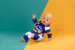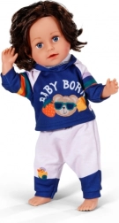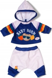 Stilna trenirka za lutke veličine 43 cm unosi novu dimenziju igre. Set sadrži majicu s kapuljačom i hlače u plavo‑bijeloj kombinaciji s razigranim duginih prugama i tiskom BABY BORN. Odjeća se lako oblači i svlači, idealna je za igru uloga, razvoj fine motorike i poticanje mašte djece od 3 godine.
