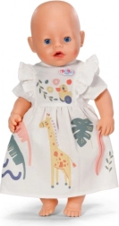 Haljina je kompatibilna s lutkama BABY born 43 cm i s BABY born Teddyjem. Dio pakiranja je praktična vješalica od recikliranog materijala, koja uči djecu brizi o odjeći i održavanju reda u ormaru lutke.