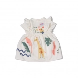 Priuštite svojoj lutki stajliš ljetni outfit. Bijela haljinica s raznobojnim motivima džungle i preslatkom žirafom ima prozračan kroj, nježne volane na rukavima i jednostavno odijevanje. Odlična je za maštovitu, raznoliku i dugotrajnu igru.