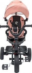 Tricikl ima veliko, udobno sjedalo i opremljen je trotočkovnim pojasevima s mekanim zaštitnim elementima.