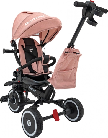 Dječja tricikla SporTrike idealno je vozilo za djecu u dobi od 1 do 5,5 godina. S ružičastim dizajnom i metalnim okvirom nudi sigurnost i visoku udobnost zahvaljujući podesivim pojasevima i sklopivom sjenilu.