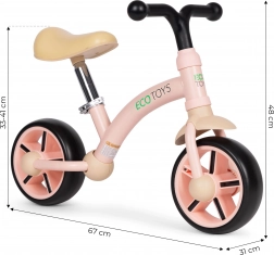 Guralo ECOTOYS idealno je za malu djecu koja započinju svoj biciklistički put. Razvija motoričku koordinaciju i uči ravnoteži, a istovremeno priprema za kasniju vožnju na klasičnom biciklu.