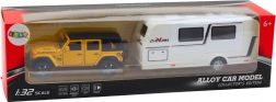 Realističan metalni model terenskog vozila s karavanom u mjerilu 1:32 donosi metalnu izradu, svjetlosne i zvučne efekte, napinjački pull-back pogon i otvarajuća vrata. Odličan za igru i kolekciju, uključujući baterije.