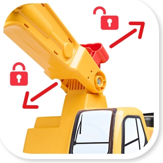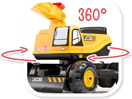 Ruka bagera rotira se oko okomite osi pa dijete lako zahvaća i istresa bez nepotrebnog manevriranja. Više zabave, manje napora.