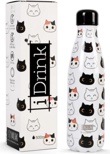 Zahvaljujući izolacijskoj konstrukciji pomaže dulje zadržati odgovarajuću temperaturu napitka. Vitko tijelo (visina 26 cm, promjer 7 cm) lako stane u držače za napitke i ruksake. Elegantna grafika s mačkama naglasit će vaš stil.