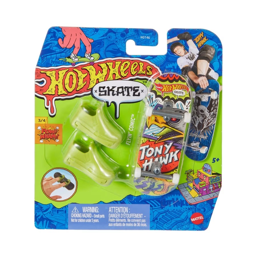Hot Wheels i legenda skateboardinga Tony Hawk stvorili su kolekciju mini skateboardova namijenjenih vožnji prstima. Svaki set sadrži mini skateboard Hot Wheels zajedno sa stilskim uklonjivim cipelama za prste, koje povećavaju stabilnost i osiguravaju bolju kontrolu pri učenju novih trikova. Svaki skateboard u ovoj kolekciji nudi jedinstven grafički dizajn, idealan za kolekcionare.