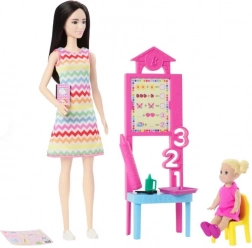 Set sadrži lutku Barbie i njezinog malog učenika, što omogućuje kreativnu igru uloga u školi.