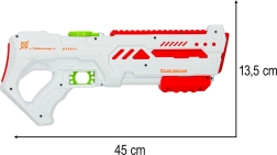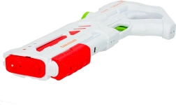 Ovaj moderni vodeni pištolj u bijeloj boji sa zelenim i crvenim detaljima donosi omiljenu zabavu u novom stilu. Zahvaljujući automatskom okidaču i USB punjenju, djeca upravljaju intuitivno i bez napora. Ergonomska konstrukcija i mala težina osiguravaju udobno držanje i pri dužoj igri.