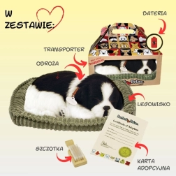 Preslatko dišuće štene border kolija donosi dojam pravog ljubimca bez briga – s realističnim efektom disanja, mekanim ležajem i umirujućim snom za djecu od 3 godine i ljubitelje pasa.