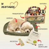 Udomićeš dišuće štene zlatnog retrivera je čaroban pratitelj koji umiruje i razveseljava. Spavajući psić s ogrlicom i vjernim detaljima izgleda kao živ, a nježno „podizanje trbuščića“ pri disanju djeluje prirodno i umirujuće. U paketu je i udoban ležaj kako bi štene imalo svoje sigurno mjesto.