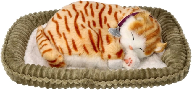 Ova dišuća plišana mačkica u izdanju riđe prugaste micice djeluje iznimno realistično – ima mekanu dlaku, slatku ogrlicu i mirno se odmara u mekoj košarici. Nježan pokret koji oponaša disanje pruža osjećaj mira i sigurnosti, pa je idealna kao utješni pratitelj za djecu i odrasle.