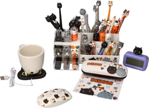 Održavajte svoj radni stol savršeno urednim uz stilski stolni organizator s motivom mačke. Ovaj simpatični dodatak nudi više pretinaca za olovke, olovke na grafit, i sitnice, kako bi sve uvijek bilo pri ruci. Odličan za kućni ured, dječju sobu i školski pribor. Spaja razigran dizajn s praktičnim rasporedom te donosi red i veselje na vaš stol. Više pretinaca, sladak mačji dizajn, kompaktne dimenzije i jednostavno održavanje.