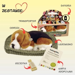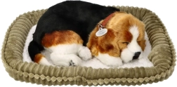 Dišuće štene beagle Perfect Petzzz je plišana igračka osmišljena da što vjernije oponaša uspavanog psića. Nježno se podiže i spušta kao da diše, a zahvaljujući realističnim bojama krzna i mekoj ležaljci postat će omiljeni dodatak dječjoj sobi i dnevnom boravku.