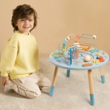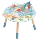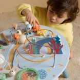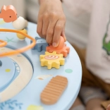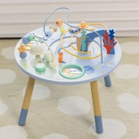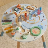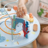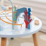 Drveni stol za aktivnosti Morski život odličan je uvod u svijet oblika i boja. Siguran za najmlađe, izrađen od kvalitetnog drva i obojen nezapalnim, netoksičnim bojama. Djeca su potaknuta na igru stojeći, što podupire njihovu koordinaciju i ravnotežu. Edukativne koristi ovog stola su velike, bilo da je riječ o poboljšanju fine motorike ili razvoju glazbenih vještina.