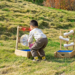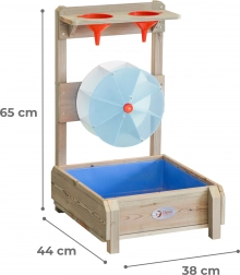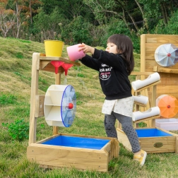 Ova vanjska vodena igračka od impregniranim prirodnog drva idealan je dodatak svakom pješčaniku i vrtu. Djeca uče principe strujanja vode i uzročno–posljedičnih veza, dok zavrtjeni kotač i protok kroz žlijebove donose radost otkrivanja.