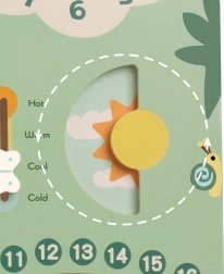 Ovaj šareni i pregledni drveni kalendar pomaže djeci lako razumjeti osnove vremena i upoznavati se s engleskim riječima. Idealan je za učenje kod kuće i potrebe vrtića: