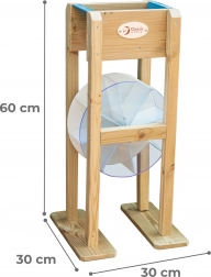 Drveni mlin CLASSIC WORLD EDU izvrsno je proširenje svakog pješčanika i vodenog kutka u vrtu. Djeca lako usvajaju principe toka i okretanja kotača – dovoljno je nasuti pijesak ili uliti vodu i promatrati kako se plavi kotač zavrti. Zahvaljujući čvrstim drvenim bočnicama i stabilnoj bazi, mlin je spreman za svakodnevne dječje eksperimente.