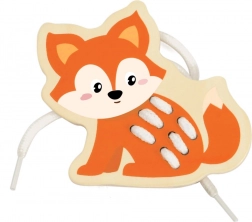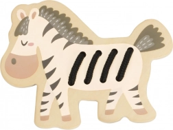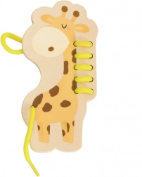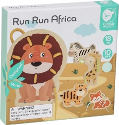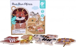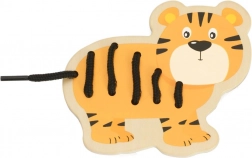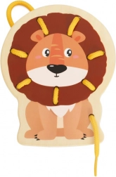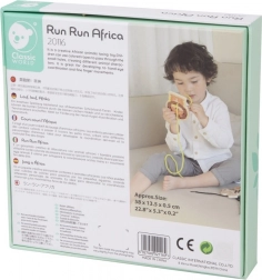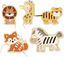 Set sadrži 5 životinjica iz Afrike (žirafu, lava, tigra, lisicu i zebru) i 5 šarenih vezica. Glatki drveni dijelovi s sigurnom površinom dobro leže u dječjoj ruci, a raznolike boje potiču prepoznavanje boja i imenovanje životinja.