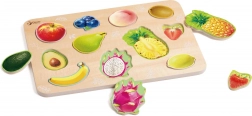 Drvena slagalica CLASSIC WORLD s voćnim motivima idealna je prva slagalica za najmlađe. Djeca tijekom igre prirodno razvijaju finu motoriku, koordinaciju oko-ruka i logičko razmišljanje tako što pojedine vrste voća umeću u odgovarajuće otvore. Žive boje i realistične ilustracije motiviraju na ponavljanje i proširuju rječnik.