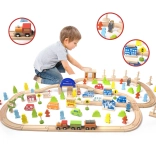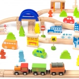 Tračnice, most, vozila, zgrade, stabla i figurice – sve u jednom pakiranju. Djeca lako stvaraju vlastiti grad i željezničku mrežu.