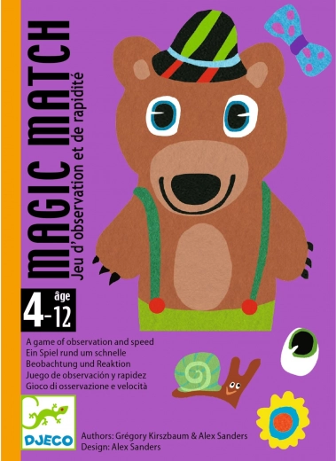 DJECO Magic Match je dinamična i privlačna igra u kojoj djeca spajaju karte likova s odgovarajućim detaljima. Jednostavna pravila, kratko trajanje partije i prekrasne ilustracije čine ovu igru idealnim izborom za obiteljske večeri i zabavu na putu.