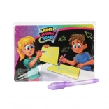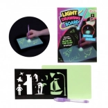 Set uključuje ploču i olovku s nevidljivom tintom, idealnu za pisanje tajnih pisama. Tinta je pod normalnim svjetlosnim uvjetima nevidljiva, ali u tami počinje svijetliti, što jamči jedinstvena i iznenađujuća iskustva za djecu. U pakiranju se nalaze i predlošci za još više zabave i inspiracije.
