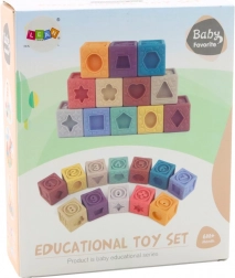 Ove meke senzorne kocke idealna su edukativna igračka za najmlađe. Različite boje, oblici i teksture pozivaju na dodir i istraživanje, dok ugrađena zviždaljka pri stiskanju proizvodi zvuk koji jača koordinaciju i slušnu percepciju. Zahvaljujući sigurnom materijalu, kocke se lako hvataju, stišću i pogodne su i za igru u vodi.