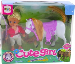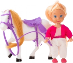 Sadržaj pakiranja: mini lutkica u jahaćoj odjeći, bijeli konj s dugom grivom i repom, ljubičasto sedlo i uzda, jahaći bič.